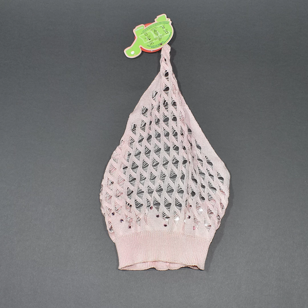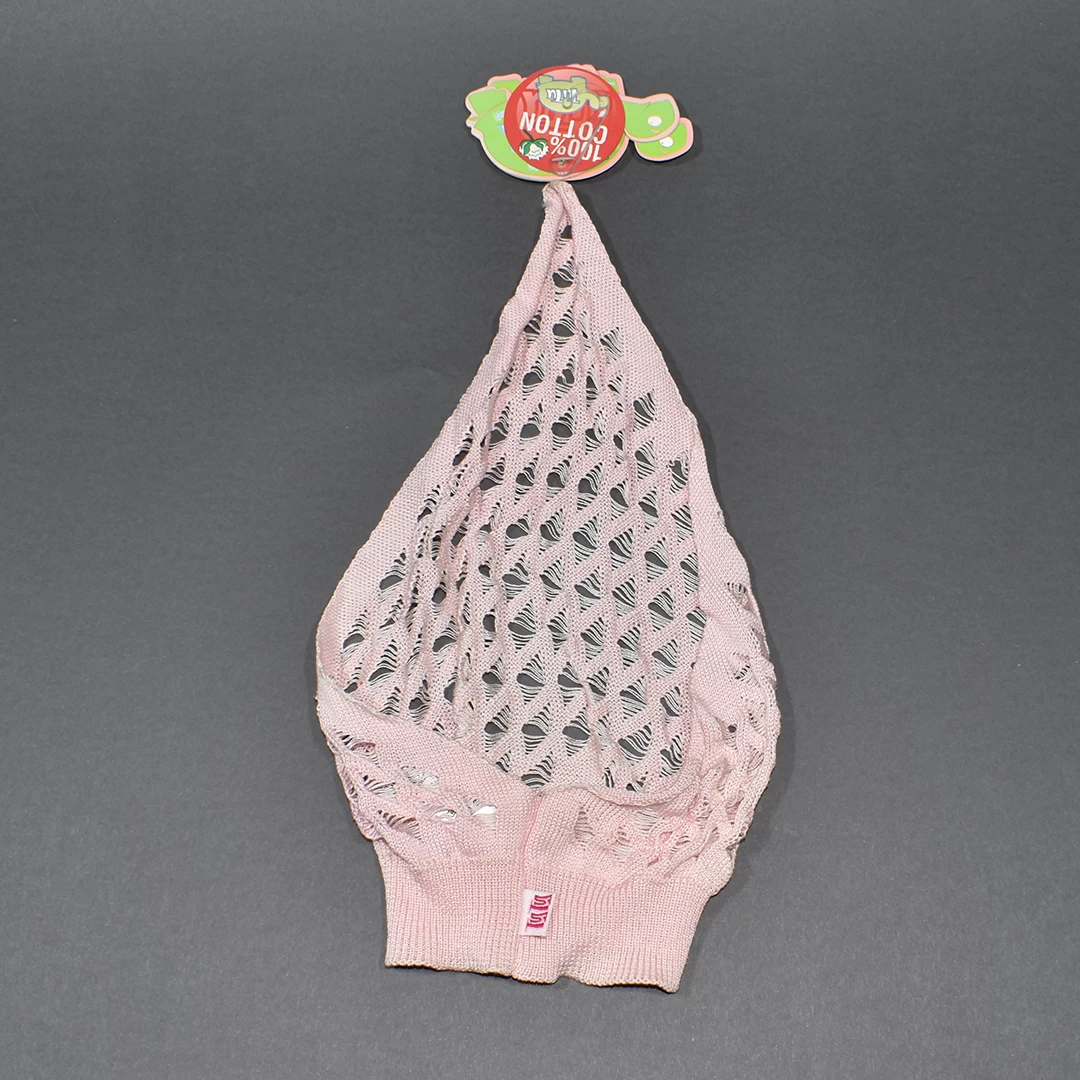 Нежна бебешка шапка за момиче - Розово фино памучно плетиво на дупчици
