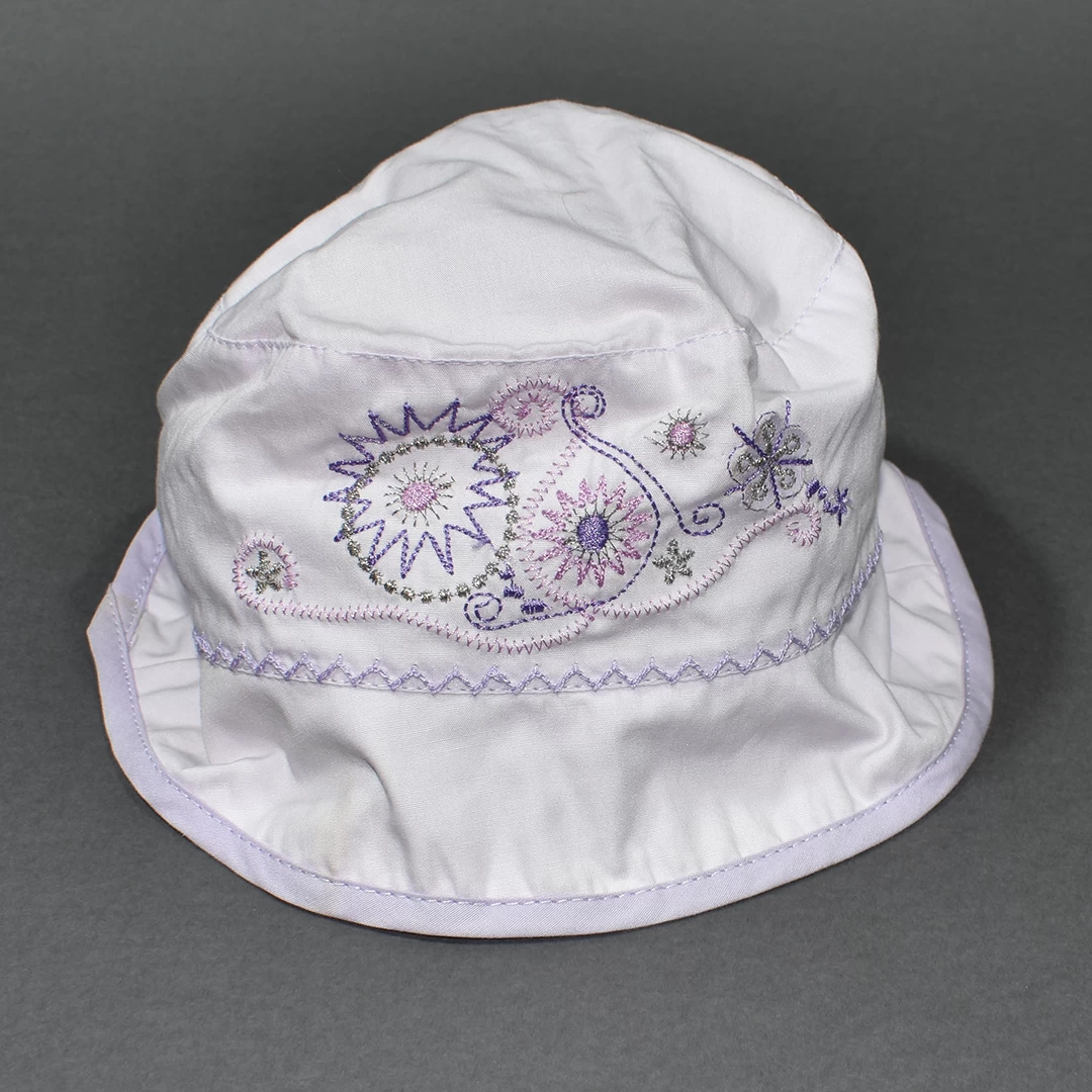 Изработена изцяло от 100% памук, тази бебешка шапка осигурява мекота и комфорт през топлите летни дни. Специално добавената бродерия придава на шапката уникалност и изящество. Тя е съчетание от стил и практичност, което я прави перфектния аксесоар за вашата малка принцеса.