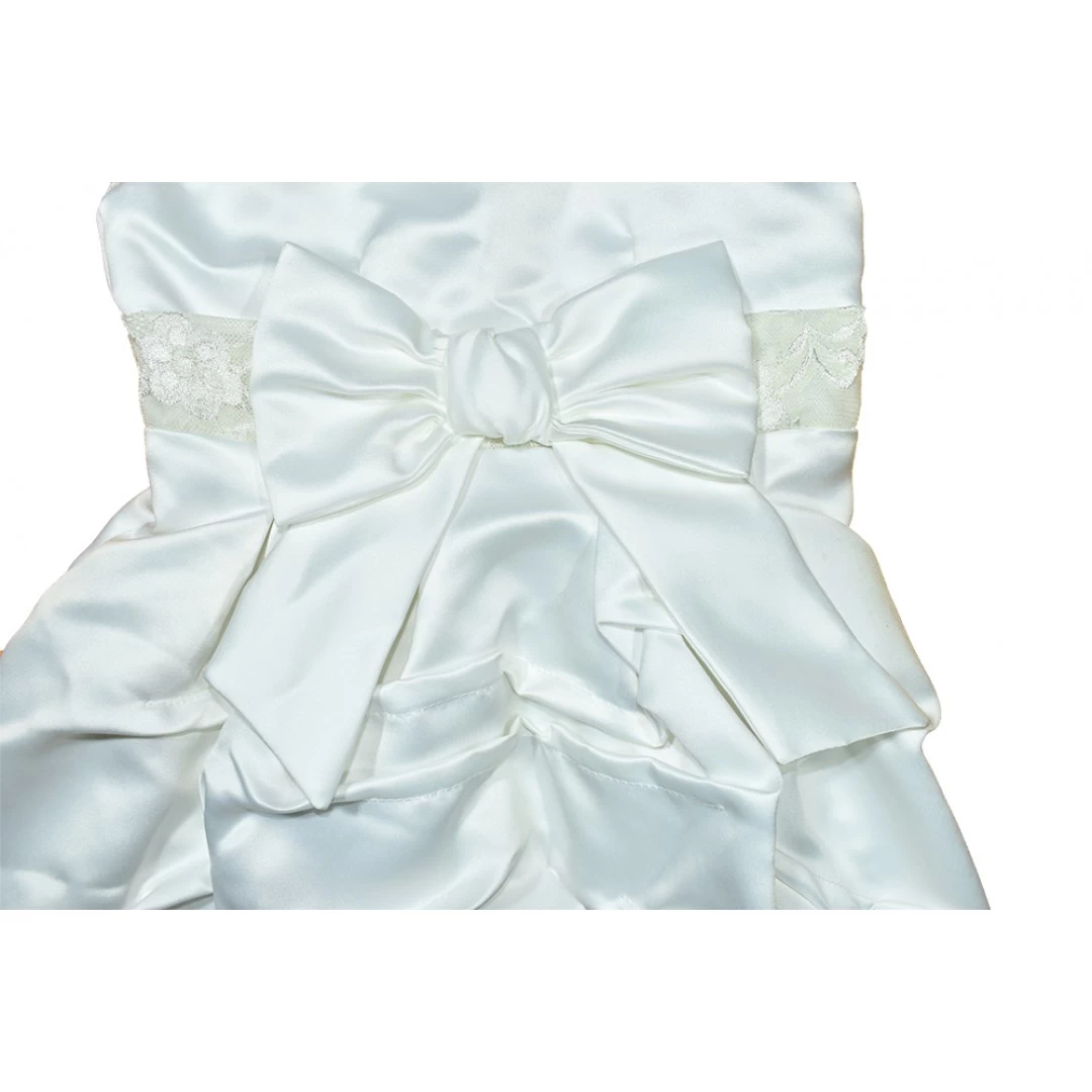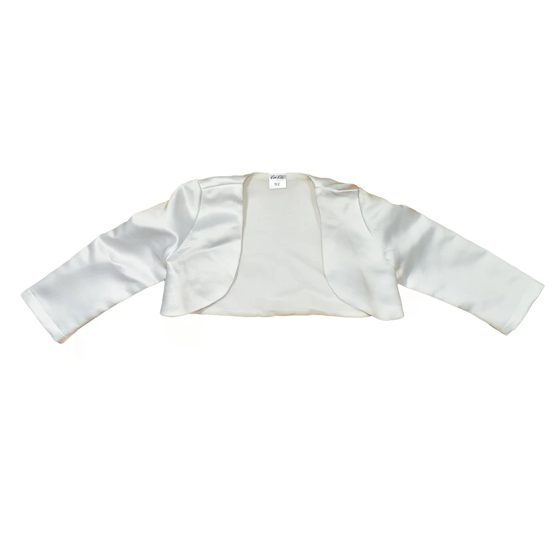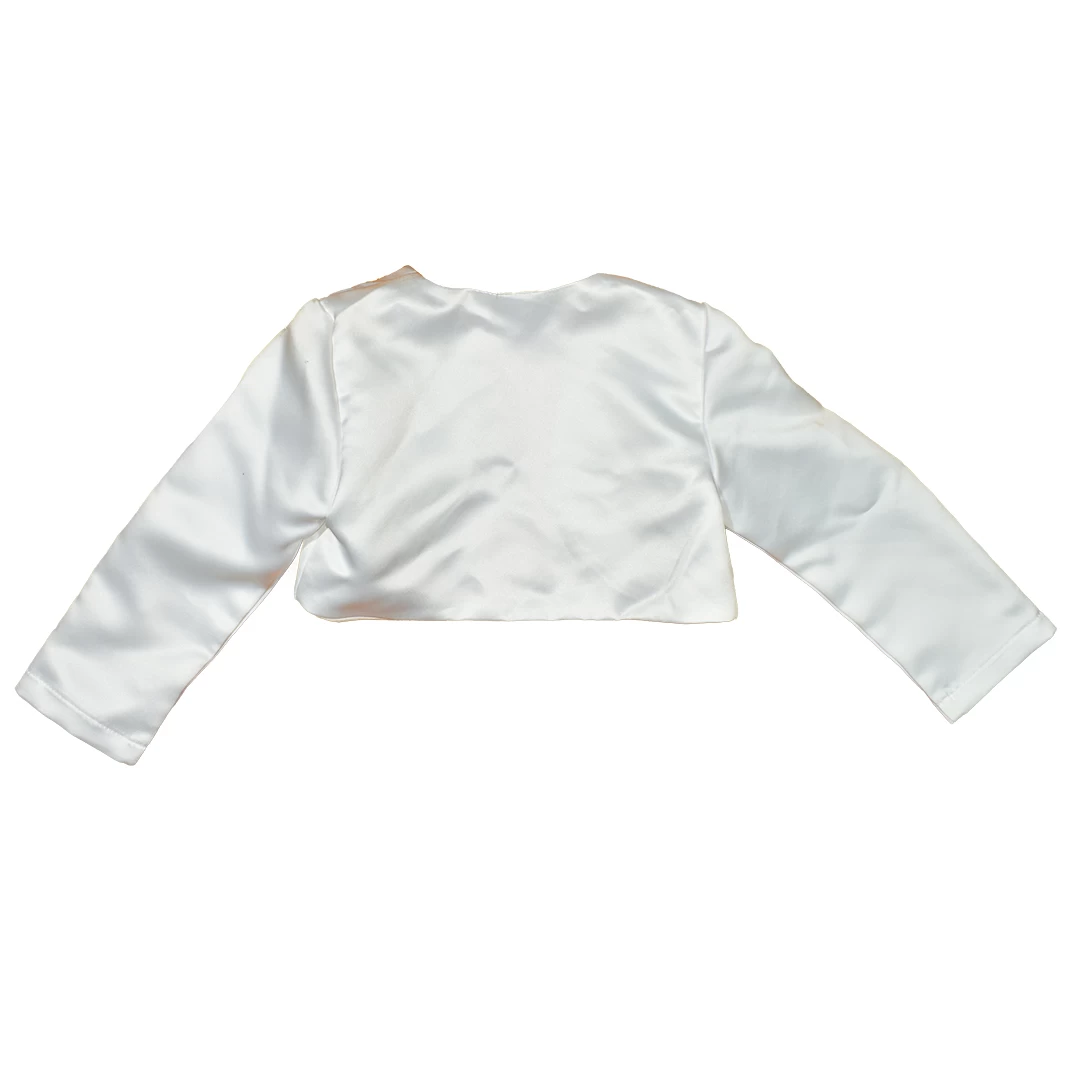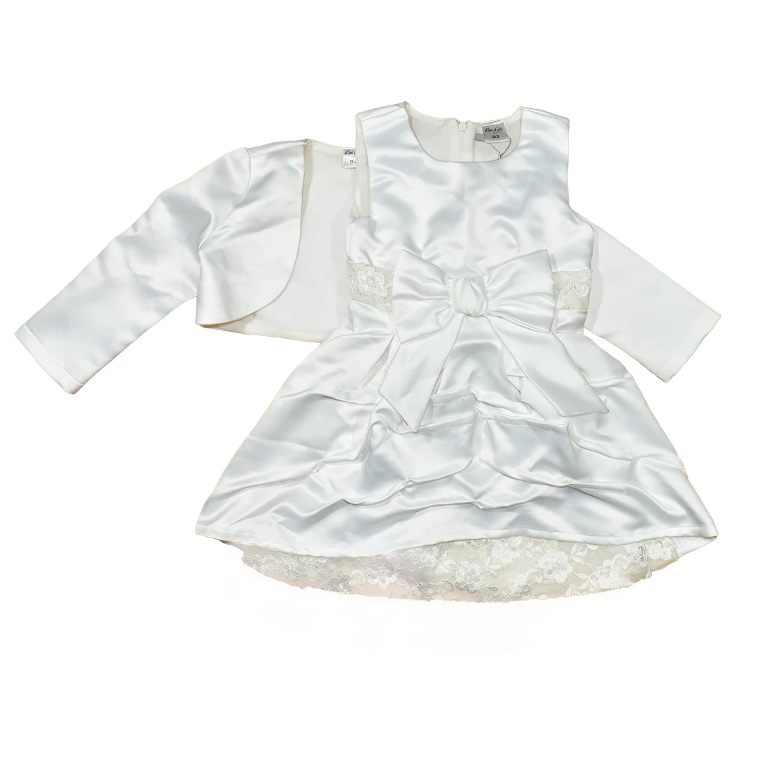 Официална бебешка рокля за момиче с болеро в бяло и панделка