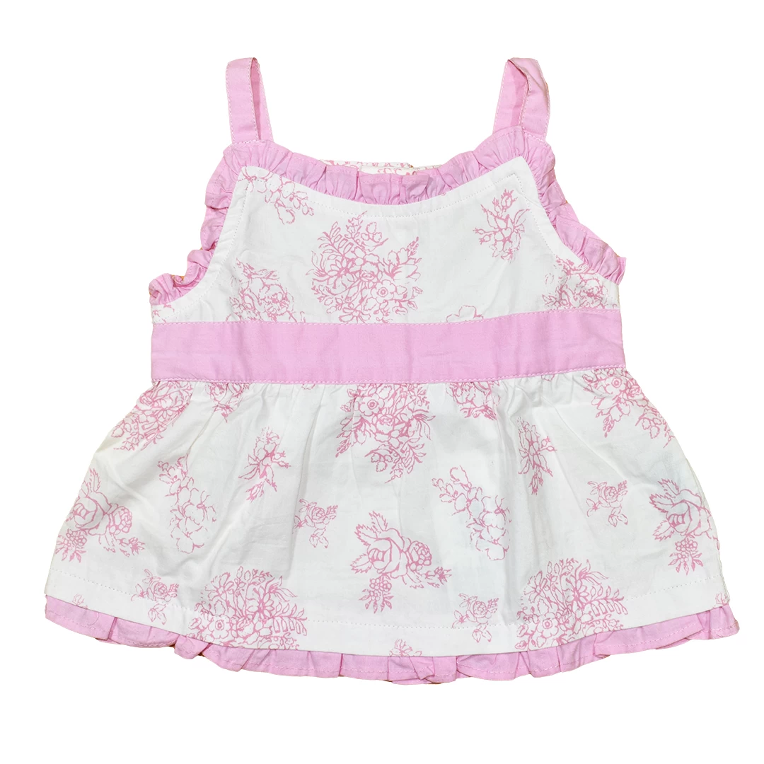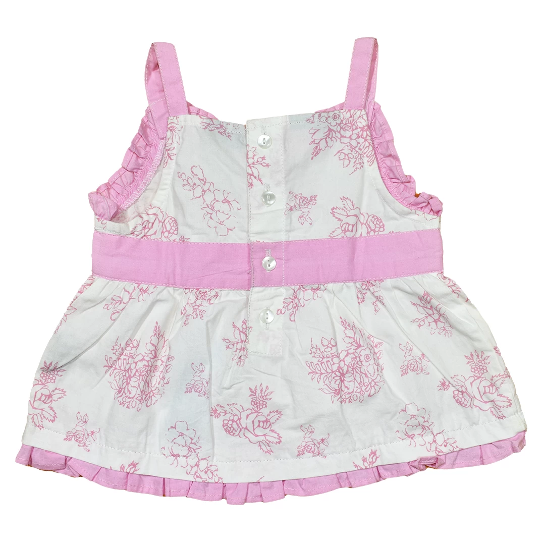 Розова елегантност за малки принцеси: Бебешка лятна рокля в бяло с розови цветя и кантове