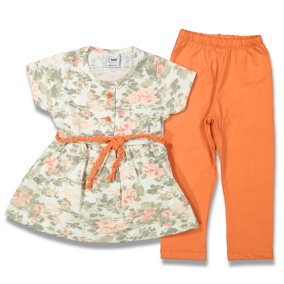 Летен детски комплект за момиче от 2 части, включващ туника на розички и клинче в коралов цвят. Изработен е от 100% памук, което го прави удобен за носене през летните дни. Произведен в Турция.| Характеристики | |