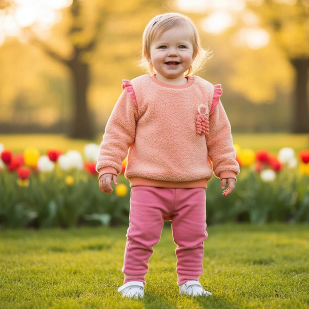 Ватиран бебешки комплект за момиче със стилно оформена блуза в кремаво на цветя и изчистено долнище с ластик за по-голямо удобство. Изработен е от 100% памук, който осигурява мекота и комфорт за детската кожа. Идеален за ежедневни носене или специални поводи. Произведен в Турция.| Характеристики | |