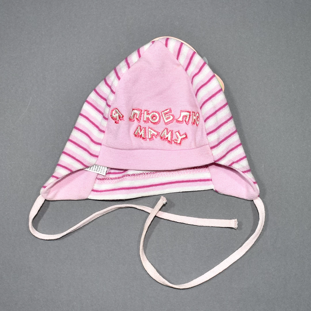 Захарно-розова бебешка шапка с надпис 'Обичам мама