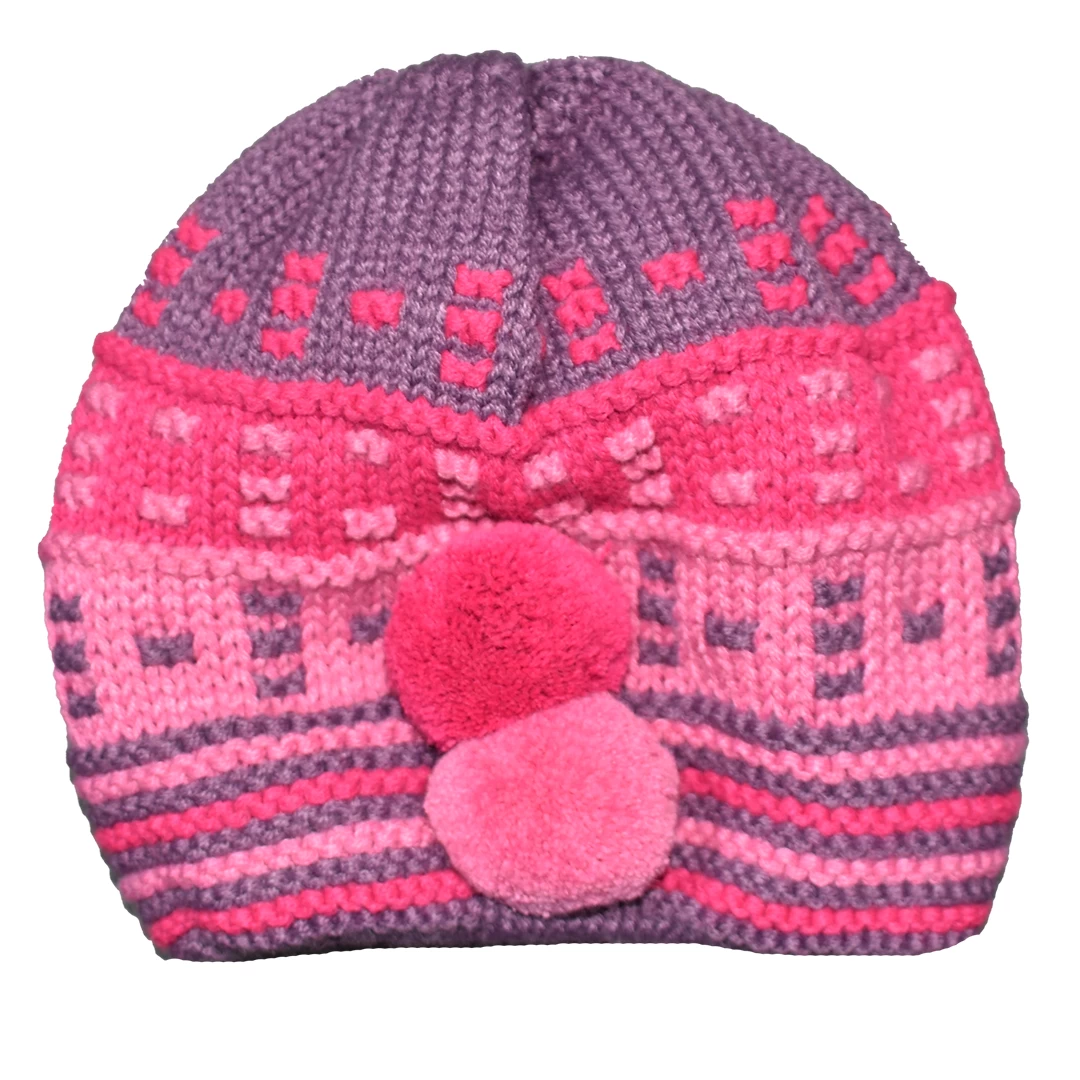 Зимен Калейдоскоп: Детска Шапка 'Помпони и Патерни' за Момиче