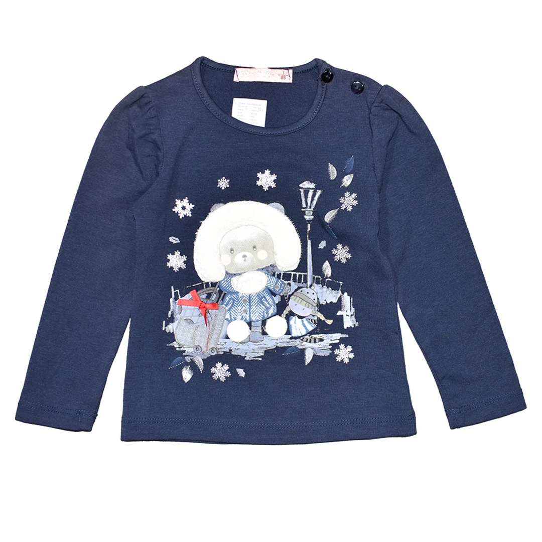 Топли Зимни Моменти: Тази очарователна детска блуза за момиче е украсена със зимен мотив, който внася усещане за празнична вълшебство и топлина.