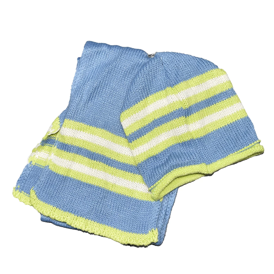 1. Живи цветове за студени дни: Комплектът "Зимна Вълна" е специално създаден да внесе цветно настроение в зимните дни. Със свежата комбинация от синьо и лимонено зелено, шапката и шалът са идеални за малкия авантюрист, който обича да се забавлява на открито, дори когато термометърът сочи ниски температури.